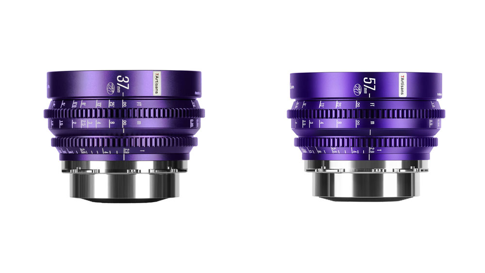 Built of metal for durability, these 37mm & 57mm prime lenses have a purple-hued exterior, setting it apart from standard lenses in your kit.